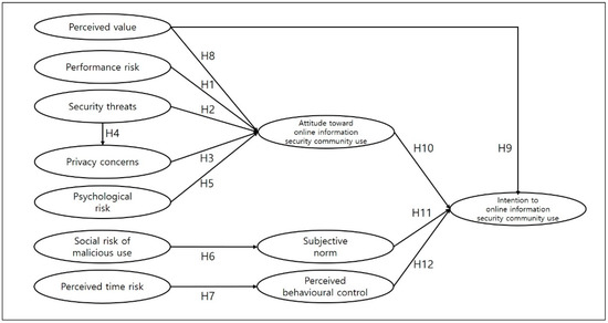 Performance risk can be defined as the possibility of malfunction, ‘out of action’, or an unexpected service-quality level, when using cyber-security communities [45]. Several studies have tested the influence of the performance risk construct and have shown strong empirical support of performance risk being one of the most significant predictors of innovation adoption, including in the virtual world of cyber-security experts and hackers [5,13]. Therefore, the following hypothesis was proposed: