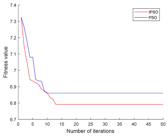 where was the current number of iterations, the maximum number of iterations, and and were the maximum and minimum values of the inertia weights. Appropriate inertia weight played an important role in the search ability of IPSO. Combining previous research and real experimental results, we found that of 0.9 and of 0.3 were the most suitable for this model, which could achieve a balance between local search and global search.