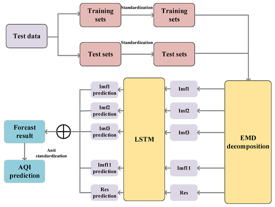 Second, the EMD–LSTM prediction model was used to obtain the prediction value of each component. Third, the predictive results of each component were summarized to obtain the final prediction result.