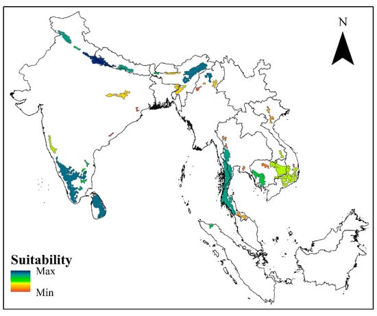 3.2. Current and Future Potential Habitats of Asian Elephants