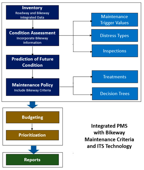 Bikeway maintenance criteria and ITS technology integrated in the PMS components.