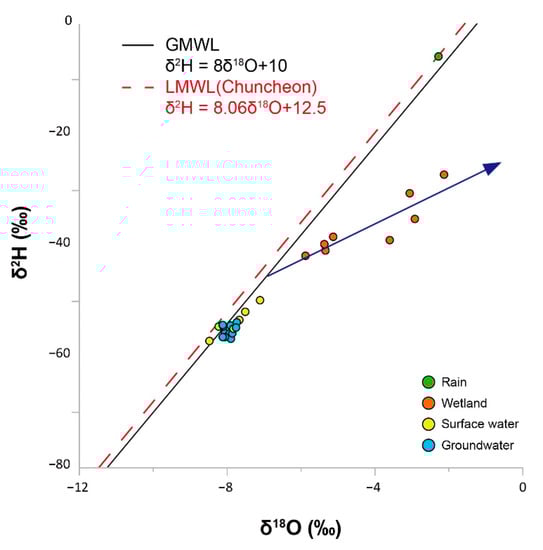 - Qian, H.; Wu, J.; Li, P. Stable oxygen and hydrogen isotopes as indicators of lake water recharge and evaporation in the lakes of the Yinchuan Plain. Hydrol. Processes 2014, 28, 3554–3562. [Google Scholar] [CrossRef]