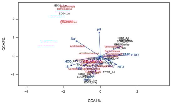 - Eiler, A.; Bertilsson, S. Composition of freshwater bacterial communities associated with cyanobacterial blooms in four Swedish lakes. Environ. Microbiol. 2004, 6, 1228–1243. [Google Scholar] [CrossRef] [PubMed]