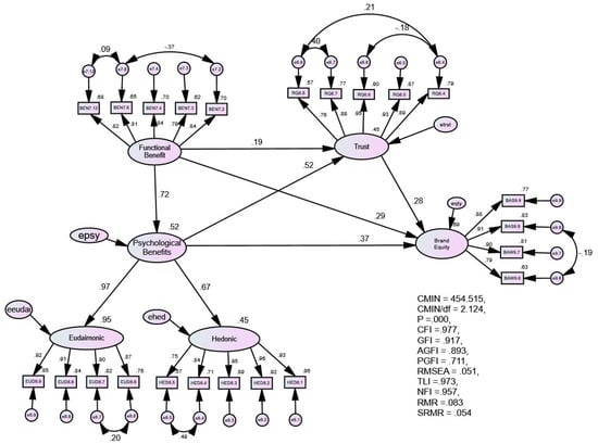 We adopted the functional benefits scale, a seven-point semantic differential scale [86] with five measured items. We also adopted the psychological benefits scale [87] that comprises four measured items of the eudaimonic happiness scale and five measured items of the hedonic happiness scale. We next adopted five measured items of stakeholder trust scale [67]. Finally, we adopted four measured items of brand equity [10], using a seven-point Likert scale from strongly disagree (1) to strongly agree (7). More details about these scales are provided in Table A1, Appendix A.