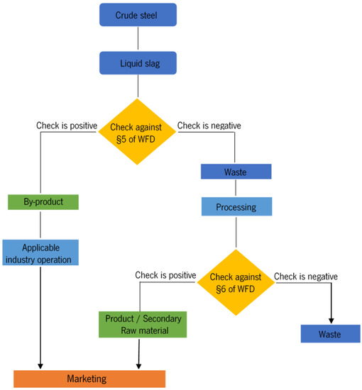 Different classifications of steel slag according to Articles 5 and 6 (§5 and §6) of the European Waste Directive 2008/98/EC, amended by Directive (UE) 2018/851 adapted from [68].