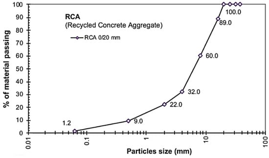 Concrete is the primary waste source in CWD. This concrete can be reused as recycled concrete aggregate (RCA), prepared through the crushing and grading of waste concrete, which can be wholly or partially used as a raw material in new concrete mixtures [17]. Because the high volume of RCA produced exceeds the amount placed back into the construction cycle, finding alternative applications for RCA is essential to maintain the construction industry as globally sustainable. Hence, utilizing recycled aggregates for highway pavement construction offers tangible environmental and economic benefits [18].