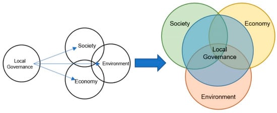 Among these approaches, the three-pillar approach was identified as one of the most explicit sustainability evaluation models in Integrated Environmental and Economic Accounting 2003 [11]. Furthermore, based on this approach, the three-pillar evaluation model has been widely recognized and applied [12]. In further studies, researchers tried to add more evaluation dimensions beyond environment, society, and economy, constituting the developments of this basic evaluation model. Reyes Nieto, Rigueiro, Simões da Silva and Murtinho [13] developed the UISA fEn (Urban Integrated Sustainable Assessment Methodology for Existing Neighborhoods) tool to analyze existing evaluation systems by adding the management dimension, and demonstrated management’s vital function in coordinating the relationship between environment, society, and economy. Alternatively, using the cultural dimension emphasized the trend of social diversification and the protection and utilization of local culture [14]. As the first global city sustainability evaluation system, macro-management, infrastructure, and other dimensions were added to ISO37120: 2018 to establish a more comprehensive sustainable city development evaluation system [15]. However, cities are complex [16]. Sustainable city development involves many aspects, making them have complexity and fuzzification [17]. The interaction of all aspects would affect sustainable development’s practical efficiency and results [18]. Therefore, it is still meaningful to explore the development of the evaluation model and put it into practice, which fully considers cities’ actual situation. Further research makes city governance’s role in sustainable development recognized. When Salmoral, Zegarra, Vázquez-Rowe, González, del Castillo, Saravia, Graves, Rey and Knox [19] analyzed the development problems of Arequipa, Peru, they found that the lack of local governance exposed the city to a severe vulnerability in terms of land and water resources and affected the overall development of the city. According to the research of The European Charter for the Safeguarding of Human Rights in the City, Marsal-Llacuna [20] believed that good local governance played an important role in realizing sustainable city development and coordinating various interest groups.