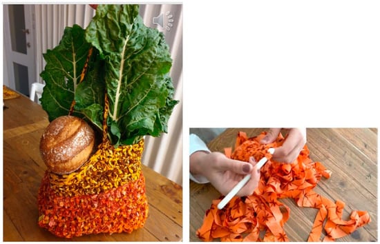 - The revival of traditional sewing methods and re-designs of unused clothes to challenge fast fashion and the issue of textile waste, such as making shopping bags out of old clothes (see Figure 2 below)