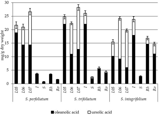 | Oleanolic Acid/Oleanosides Content (% DM) | |||