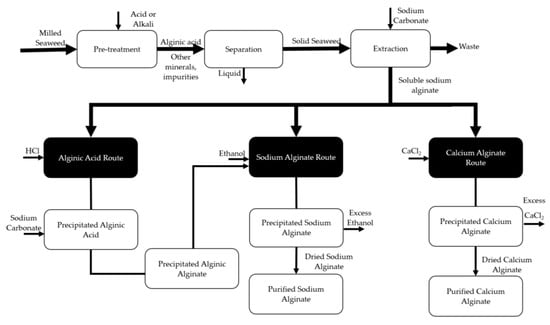 2. Alginate Production Process—A Conventional Approach