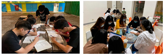 When implementing the CFL method, the teacher required students to join groups and encouraged them to collaborate. Because students’ face-to-face interaction in class increased their interest in learning, students not only actively engaged in face-to-face discussions in their spare time but also interacted through online social networks. These opportunities for peer interaction deepen students’ engagement with the coursework and increase their interest in cooperative learning. As shown in Figure 7, students participated in face-to-face meetings after class to discuss solutions to complex problems.