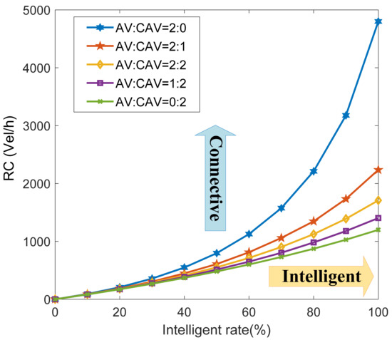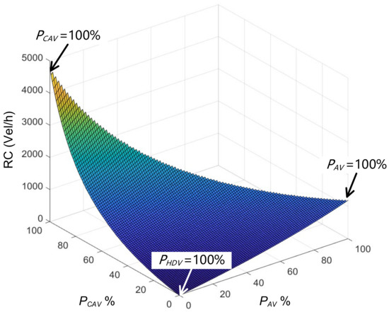 - From the perspective of saturated headways, we demonstrated that, as AV and CAV technologies progress, the existing road infrastructure would still have an extremely large RC. Furthermore, we investigated RC formulation comprising deterministic and random expressions, which theoretically proved the scale effects of AV and CAV penetration rates on road operation efficiency.