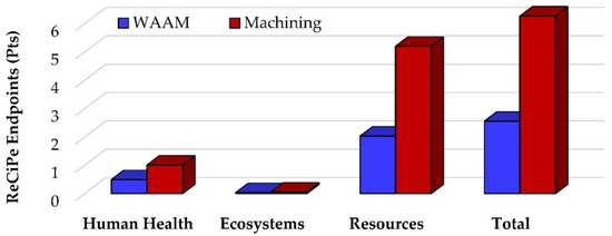 - The LCA methodology (ReCiPe2016 method in SimaPro software and the ecoinvent 3.7 database) shows the environmental benefits of WAAM when compared with traditional machining due to a much lower material waste. Similar benefits were also found regarding energy consumptions due to the machining equipment being more energy intensive than that of WAAM.