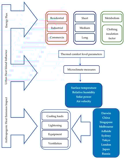 - Chapman, S.; Watson, J.; McAlpine, C. Large seasonal and diurnal anthropogenic heat flux across four Australian cities. J. South. Hemisph. Earth Syst. Sci. 2016, 66, 342–360. [Google Scholar] [CrossRef]