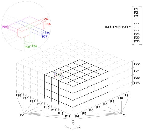 The choice of ANN responds, on the one hand, to the fact that these models are naturally well suited for the challenges outlined above (strong nonlinearity and a large regression output of up to 100 points). On the other hand, it may be noted that the finite element method (FEM), as used in the SAP2000 calculations of this study, aims to solve differential functions that arise from structural analysis. Neural networks, in turn, are naturally equipped to deal with continuous and differentiable data that allow for an error optimization process through the gradient descent algorithm. In other words, the differentiable character of the data generated by FEM calculations is another aspect that makes the problem under study in this paper a good fit for a neural network model.