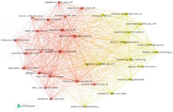 From the table, the most influential reference was authored by Arnstein [56], advancing the thematic aspect of public participation, which has become a cornerstone in the pursuit of the smart city concept. According to the author, citizens’ power in contributing and shaping decisions can only be realised if they are actively engaged and allowed to participate at different levels. The second most influential reference in respect to the number of citations (5564) was authored by Zanella, Bui, Castellani, Vangelista, and Zorzi [57] in 2014, and their attention was on the impacts of the ‘Internet of Things for Smart Cities’. From the literature, during this period, the number of IoT devices targeted on cities were increasing (increased by 20% between 2013 and 2014) to reach 16 billion products. Further, a projection during that period was that by 2020, the number of smart things would increase to over 40 billion products [87]; hence, supporting interest in this field. Overall, despite most of the influential references, as depicted in Figure 5, being skewed toward sustainability, it is evident from the number of citations, as shown in Table 2, that most of researchers and publications were interested in understanding the different aspects of smart cities.
