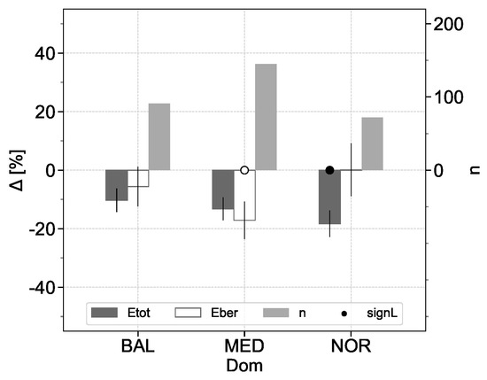 A reduction is observed for both emission variables at the transition from 2018 to 2019, but this was only statistically significant from 2019 to 2020, with Etot falling by nearly 15% and Eber by 6% (Table 4). The number nCalls of per-ship annual port calls was stable from 2018 to 2019 but then decreased by about 7% in 2020, which is highly significant. The values from Table 4 are per-ship median figures for non-HSC only, in contrast with those reported in [8], which is likely an average value at the Ro-Pax fleet level.