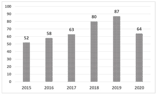 The timespan covered five years (from January 2015 to June 2020). It was chosen because, since 2015, the interest from social sciences in the topic of decarbonization in terms of scientific publications has constantly started to increase (see Figure 2).
