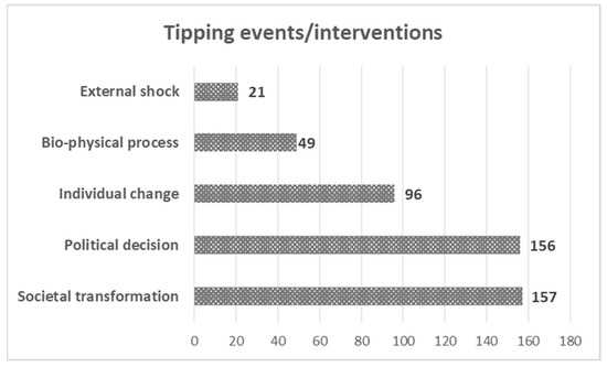 Articles included in the review also frequently consider policymakers and civil society both as sources and objects of transformation (see the section on events and typologies of change below). For example, Shin [65] examines the role of local governance in facilitating instances of policy innovation in a Chinese community. Kotikalapudi [66] focusing on the political economy of coal in Bangladesh is an example of considering the effects of what we could call negative tipping points on civil society: the government’s plan to increase the share of coal in the electricity mix to reach energy needs triggers opposition by local communities, who perceive their livelihoods endangered.