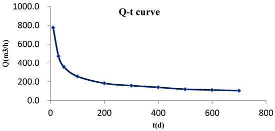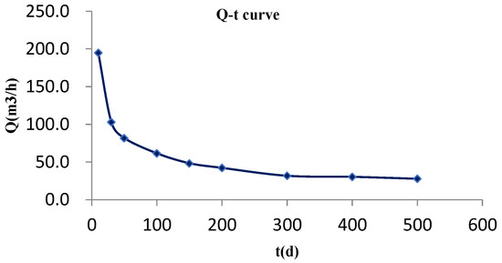 The accurate prediction of water inflow plays an important role in preventing and controlling the occurrence and control of water disasters and can guide mines to formulate prevention and control measures. According to the characteristics of water inrush, the inflow formula of a confined aquifer with a constant depth is used to predict the mine water inflow [22,23,24], and the stable value of inflow and its variation characteristics with time are predicted.