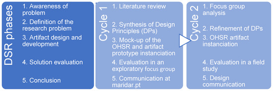 The second phase of the first cycle presents the DPs of the OHSR artifact. The DPs were defined based on the information supported in the literature review and interaction with relevant stakeholders to draw the design and identify functions of the OHSR mock-up and the OHSR artifact prototype instantiation. Document studies can provide an understanding of the practice under consideration, which provides clues for requirements [64].