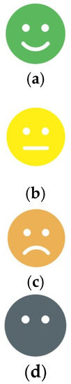 Figure 4. (a) Green icon for DRI [75], (b) yellow icon for DRI [75], (c) orange icon for DRI [75], (d) grey icon [75].