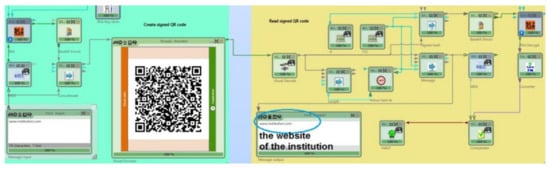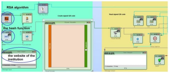 The RSA-signed message is then translated into a QR (Quick Response)-coded recording, as shown in Figure 6 (RSA–the hash function–the institution’s website).