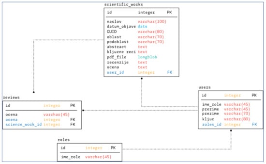 In Figure 7, the application’s homepage is shown, whereas in Figure 8, the objects–connections model is demonstrated with the marked primary keys (PK) and foreign keys (FK).