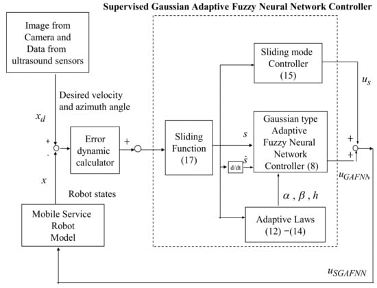 Since is negative semi-definite, this implies that is bounded and under the condition of .This means the SGAFNN controller’s system stability is guaranteed []. The concept block diagram of the design is shown in Figure 2.