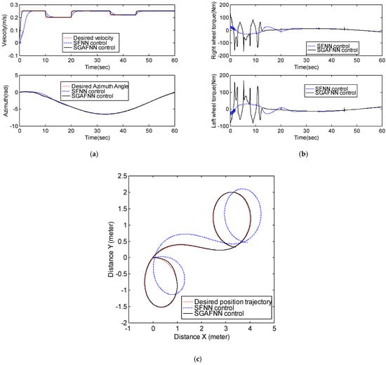 (a). System states trajectories of SGAFNN. (b). Control inputs of SGFNN. (c). Moving path diagram of robot.