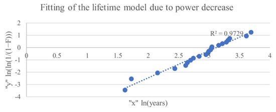 24], power output data for five modules were linearly extrapolated to 80% and then fitted to a Weibull distribution. Similarly, Kumar et al. [