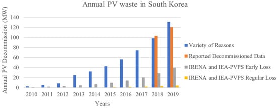 - Kim, H.; Park, H. PV Waste Management at the Crossroads of Circular Economy and Energy Transition: The Case of South Korea. Sustainability 2018, 10, 3565. [Google Scholar] [CrossRef] [Green Version]