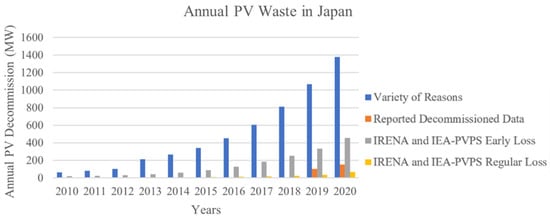 - Domínguez, A.; Geyer, R. Photovoltaic Waste Assessment of Major Photovoltaic Installations in the United States of America. Renew. Energy 2019, 133, 1188–1200. [Google Scholar] [CrossRef]