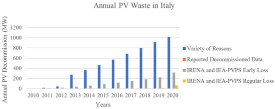 - Paiano, A. Photovoltaic Waste Assessment in Italy. Renew. Sustain. Energy Rev. 2015, 41, 99–112. [Google Scholar] [CrossRef]