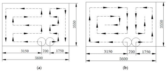 Cutting path planning. (a) Cutting path scheme 1; (b) scheme 2.