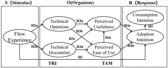 We also believe that the flow experience of using virtual tourism platforms affects participants’ Technology Readiness (TR). It should be noted that TR is an overall psychological state rather than a measure of technical ability [59]. We believe that the flow experience of virtual tourism awakens the participants’ mood, which may change the psychological state and bring changes in technology readiness. Considering these findings, we propose the following hypotheses.