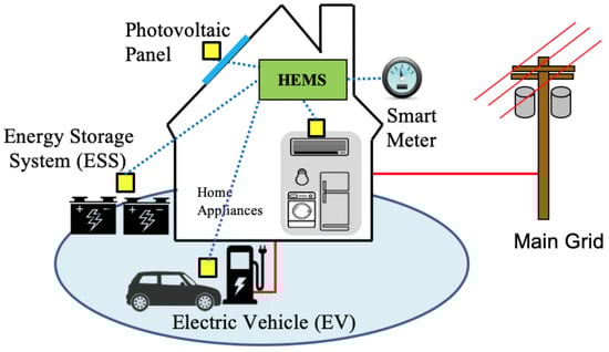 Schematic diagram of a smart home incorporating a HEMS.