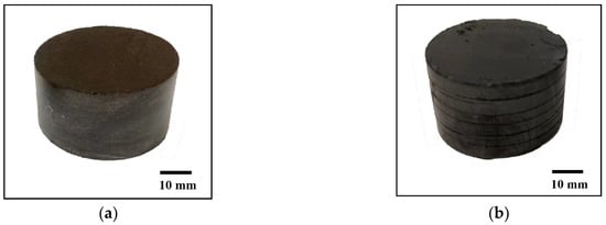 Photographs of iron–carbon briquettes for: (a) BR-LH16; (b) BR-C2.