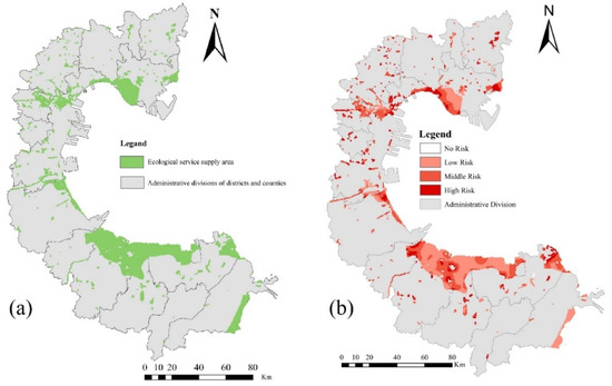 However, existing studies treat ecological barriers more as macroscopic concepts with a huge research scale, making it difficult to analyze their structure and function after identifying the extent of the ecological barriers. In regional or city-scale studies, this way of constructing ecological barriers is similar, that is, based on methods, such as environmental carrying capacity assessment and analysis of ecosystem service functions, and areas with the excellent ecological environment in the region are identified as ecological barrier areas. This research approach neither fulfils the function of ecological barriers in maintaining ecological service supply areas, nor does it reflect the role of ecological barrier areas in facilitating the delivery of ecosystem services. The areas identified in this study for constructing ecological barriers through ecosystem service provisioning area identification and risk assessment can maintain the stability of the structure and function of the ecological service provisioning areas, while facilitating the delivery of ESs.