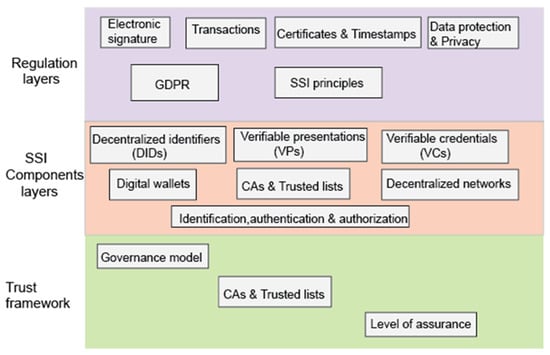 - Davie, M.; Gisolfi, D.; Hardman, D.; Jordan, J.; O’Donnell, D.; Reed, D. The Trust over IP Stack. IEEE Commun. Stand. Mag. 2019, 3, 46–51. [Google Scholar] [CrossRef]