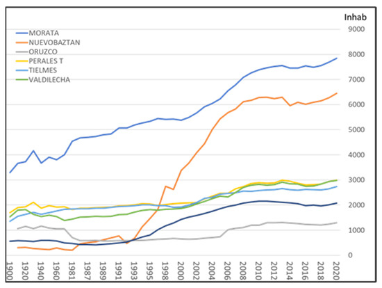 The municipalities of the Tajuña are not among the largest in terms of population size in the Community of Madrid, as it is a region with a high proportion of primary activities. However, as can be seen in Figure 3, some municipalities have experienced the greatest growth. In these cases, they have large housing estates with large plots of land.
