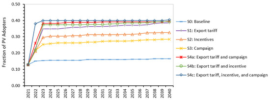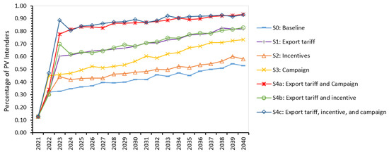 Based on the aforementioned findings, it can be summarized that both supply and demand aspects should be modeled endogenously when modeling PV transitions because the inability to expand the PV facilities and services will eventually hinder further uptake. The evidence in which intention is not always translated into adoption behavior indicates the necessity to understand inhibiting factors toward the adoption. Both financial aspects and insufficient PV facilities are evidenced to be barriers to PV adoption. It appears that the intervention that provides long-term benefits such as regulation on export tariffs, instead of short-term benefits such as incentives for PV installment, would assist higher PV adopters. It is also important to note that increasing export tariffs should be combined with other interventions such as incentives and environmental campaigns to gain full benefits to both economic and environmental performances.