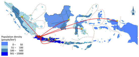 The motivation for building the model is to provide an experimental tool for policymakers to examine potential interventions toward PV adoption. The simulation for scenarios was initialized to mimic the condition in mid-2021 representing 63 PV adopters in the simulation model, eleven PV manufacturers located in West Java, and two DCs located in Jakarta and East Java based on data from the Association of Indonesian Solar Module Manufacturers (APAMSI) [68] as shown in Figure 7.