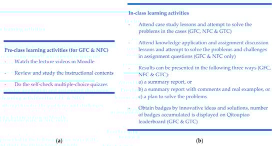 Summary of guidelines. (a) Guidelines for pre-class learning activities; (b) Guidelines for in-class learning activities.