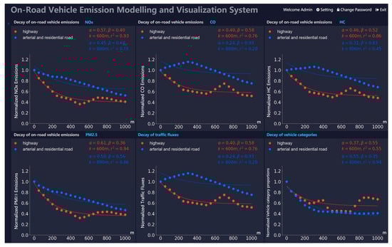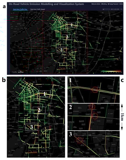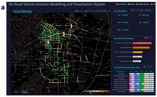 - Ding, H.; Cai, M.; Lin, X.; Chen, T.; Li, L.; Liu, Y. RTVEMVS: Real-time modeling and visualization system for vehicle emissions on an urban road network. J. Clean. Prod. 2021, 309, 127166. [Google Scholar] [CrossRef]