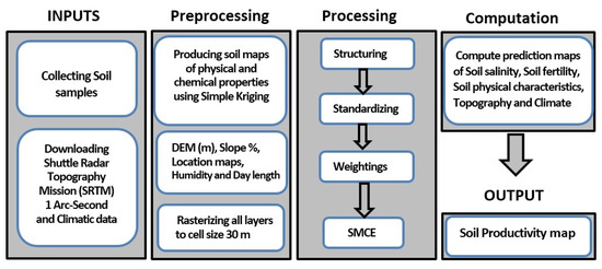 Procedural flowchart for soil productivity through Spatial Multicriteria Evaluation.