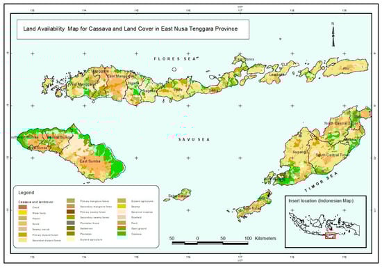- Basuki, T.; Nulik, J. Peta Agroecological Zone (AEZ) Skala Tinjau Mendalam untuk Provinsi Nusa Tenggara Timur (Edisi Kedua); Badan Penelitian dan Pengembangan Pertanian. Balai Pengkajian Teknologi Pertanian (BPTP) NTT: Kupang, Indonesia, 2007. [Google Scholar]