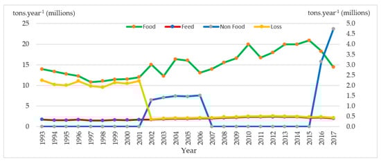 - Ministry of Agriculture Perkembangan Neraca Bahan Makanan. Available online: https://aplikasi2.pertanian.go.id/konsumsi/tampil_nbm.php (accessed on 5 January 2022).