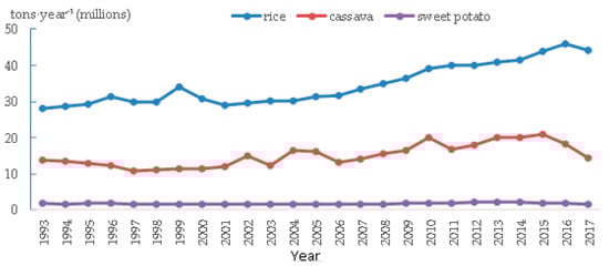 - Fuglie, K.O.; Oates, C.G.; Xie, J. Root Crops, Starch and Agro-Industrialization in Asia; International Potato Center (CIP): Lima, Peru, 2006. [Google Scholar]