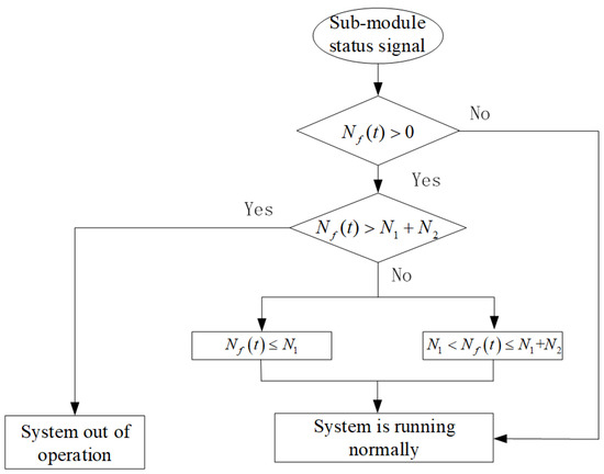 According to the redundancy protection policy proposed above and the relationship between the number of faulty sub-modules and the number of redundant sub-modules, the redundancy protection process of the MMC-HVDC system is divided into the following situations, as shown in the Figure 9: Assume that the number of sub-modules on each bridge arm is , where the number of redundant modules is which indicates the number of hot standby sub-modules, indicates the number of cold standby sub-modules, and indicates the number of faulty modules.